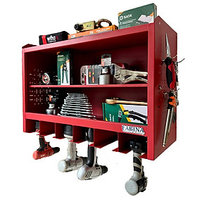 Tủ dụng cụ CSPS 61cm - 01 hộc kéo màu đỏ ván gỗ vách lưới 1.THÔNG SỐ CHUNG Kích thước đóng gói/ Package dimension: 62cm W x 43cm D x 78.5cm H Kích thước sản