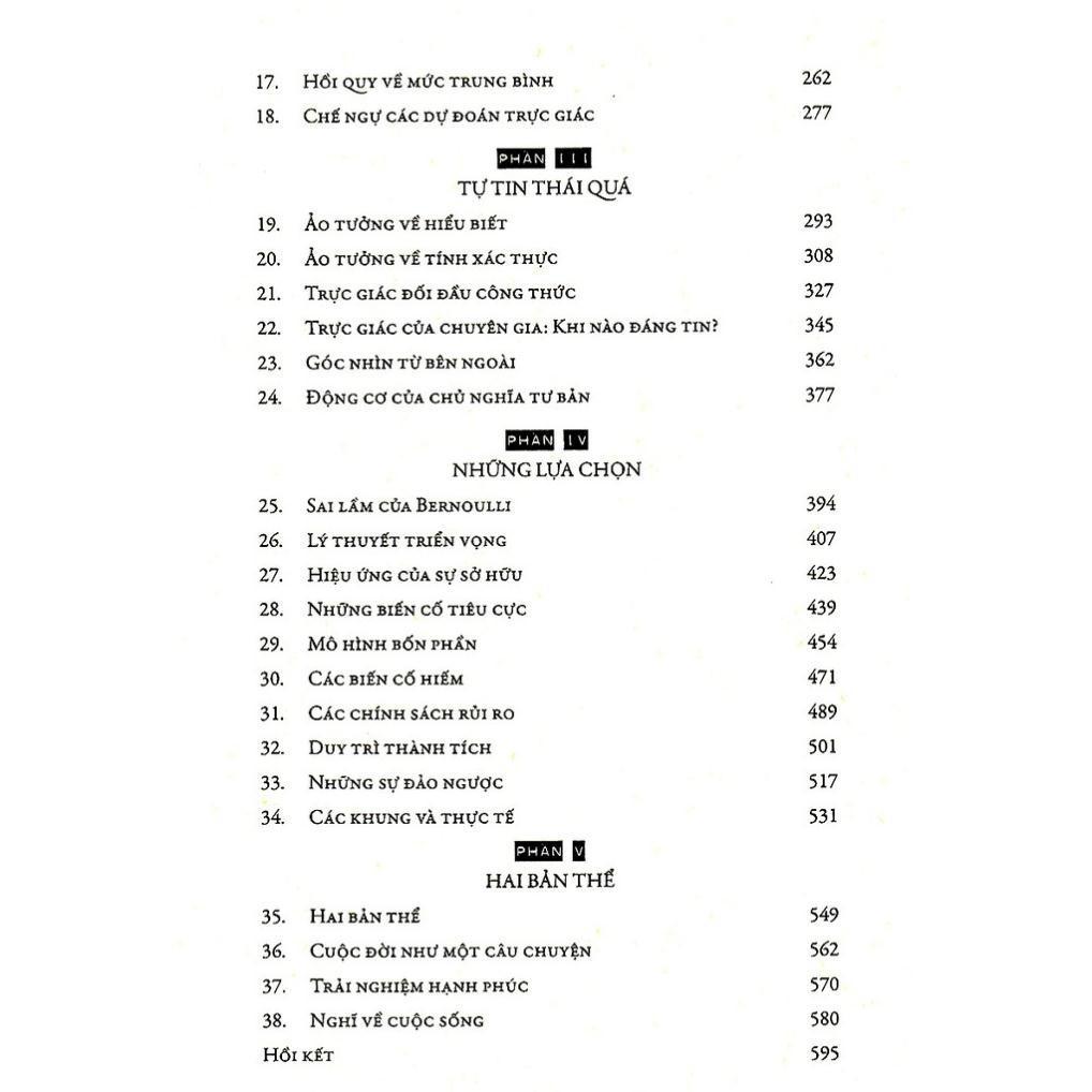 Mua tại TiktokTư Duy Nhanh Và Chậm Trong một loạt thí nghiệm tâm lý mang tính tiên phong, Kahneman và Tversky chứng minh rằng, con người chúng ta thường đi đến quyết định theo cơ chế nghĩ nhanh hơn là ghĩ chậm. Phần lớn nội dung của cuốn sách chỉ ra những sai lầm của con người khi suy nghĩ theo hệ thống 1. Kahneman chứng minh rằng chúng ta tệ hơn những gì chúng ta tưởng: đó là chúng ta không biết những gì chúng ta không biết! Cuốn sách đặc biệt đã dành được vô số giải thưởng danh giá: Sách khoa học hay nhất của Học viện Khoa học Quốc gia năm 2012, được tạp chí The New York Times bình chọn là sách hay nhất năm 2011, một trong những cuốn sách kinh tế xuất sắc năm 2011, chiến thắng giải thưởng cuốn sách được quan tâm nhất năm 2011 của tạp chí Los Algeles… Tư duy nhanh và chậm đáp ứng hai tiêu chí của một cuốn sách hay, thứ nhất nó thách thức quan điểm của người đọc, thứ hai, nó không phải là những trang sách với những con chữ khô cứng mà nó vô cùng vui nhộn và hấp dẫn. Không nghi ngờ gì nữa, đây là cuốn sách hàn lâm dành cho tất cả mọi người!