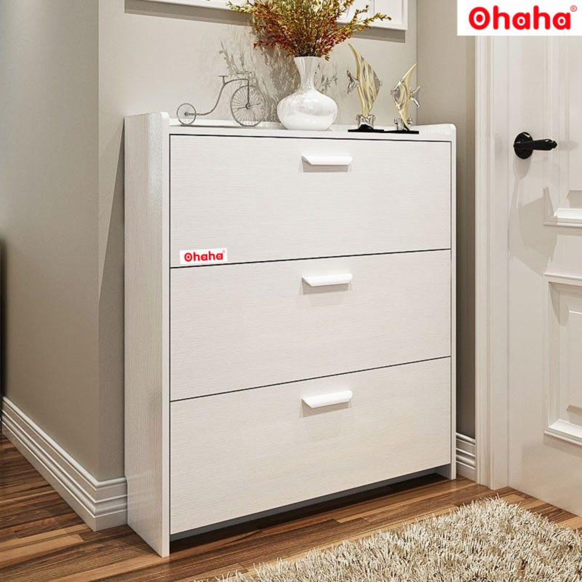 *Sản phẩm chỉ bao gồm 1 tủ không kèm các phụ kiện khác. Tủ giày thông minh cao cấp - nâng tầm không gian sống của bạn Tủ giày thông minh đang tạo nên một cơn sốt trong ngành nội thất và dần thay thế các kệ để giày truyền thống. Thiết kế hiện đại của tủ giày thông minh giúp tiết kiệm diện tích tối đa và khiến không gian sống của chúng trở nên độc đáo hơn. Sản phẩm không chỉ làm bật lên vẻ sang trọng cho căn hộ mà còn giúp ngôi nhà trở nên hiện đại và tinh tế hơn. Tủ Giày Thông Minh Tiện Dụng OHAHA - TG001 Tủ giày được thiết kế thông minh với kích cỡ vừa phải, có thể đặt khắp nơi trong nhà, trong văn phòng công ty.  Thiết kế tủ tinh tế như vật dụng trang trí với màu sắc nổi bật tô điểm không gian nội thất của bạn trở nên phong phú, đa dạng hơn.  Sản phẩm được thiết kế trau chuốt, tỉ mỉ từng góc cạnh – Giúp an toàn cho trẻ nhỏ. Kiểu dáng sang trọng, đẹp mắt, trang nhã mà hiện đại đầy cảm hứng nghệ thuật. Tủ giày gỗ MDF chất liệu thân thiện với môi trường  Tủ giày thông minh làm từ gỗ MDF lõi xanh bề mặt Melamine chống ẩm, chống xước và chống xước một cách hiệu quả. Sản phẩm không chỉ đẹp về mỹ quan mà còn mang lại độ bền chắc lâu dài. Sản phẩm đã qua xử lý chống cong vênh, mọt bằng công nghệ của Đức, thân thiện với môi trường và an toàn cho sức khỏe mọi người. Tủ giày thông minh cao cấp với kết cấu chắc chắn, an toàn