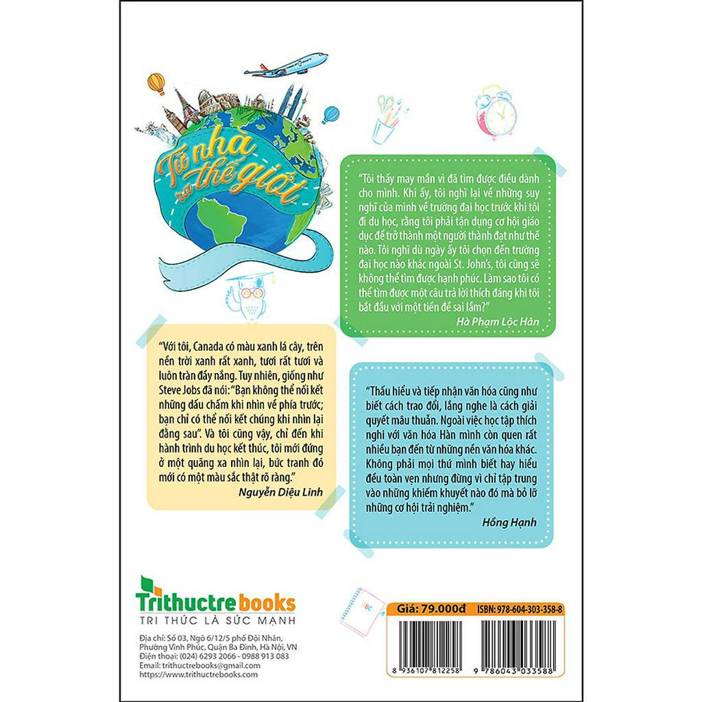 Công ty phát hành: CÔNG TY TNHH SÁCH & TRUYỀN THÔNG VIỆT NAM Nhà xuất bản: NXB Thanh Niên Tác giả: Nhiều Tác Giả Loại bìa: Bìa Mềm Số trang: 215 Năm xuất bản: 2020 TỪ NHÀ RA THẾ GIỚI Những bước chân đầu tiên của một công dân toàn cầu Bạn hình dung như thế nào về việc du học? Bạn nghĩ thế nào là một công dân toàn cầu? Trong TỪ NHÀ RA THẾ GIỚI - Những bước chân đầu tiên của một công dân toàn cầu, 10 tác giả với hành trình du học ở 10 quốc gia khác nhau trên thế giới sẽ kể cho các bạn nghe những câu chuyện có thể hoàn toàn khác những gì bạn tưởng tượng. Họ sẽ cho bạn thấy du học không phải là một con đường trải đầy hoa hồng. Bên cạnh môi trường học thuật “như trong giấc mơ”, các nhân vật đã phải vật lộn với công việc làm thêm kiếm sống, vượt qua một số rào cản pháp luật, hay mắc kẹt trong căn hộ bé tẹo ở nước bạn nhiều tháng vì dịch Corona… --- “Là một người trẻ với sức khỏe và kiến thức, hãy tận dụng những điều sẵn có này để đối diện với khó khăn một khi mình còn có thể. Đừng ngại stress, đừng ngại khổ, vì mọi cố gắng rồi sẽ được đền đáp hợp lý mà thôi.” (Đào Vân Hà - du học sinh tại Singapore). “Cuộc sống đại học của tôi tràn ngập những câu hỏi, và không biết từ lúc nào tôi cũng đã tự đặt cho mình những câu hỏi khi đang đọc bài. Và khi có câu hỏi, tôi phải đi tìm câu trả lời… Tôi thấy mình như trở lại ngày thơ ấu, khi tôi còn là một đứa trẻ tò mò về mọi thứ xung quanh nó, khi tôi còn vòi bố mua cho những cuốn sách 1000 câu hỏi vì sao.” (Hà Phạm Lộc Hân - du học sinh tại Mỹ). “Tôi du học lúc 26 tuổi, một độ tuổi lơ lửng đủ để người ta hỏi thắc mắc lý do. Tại sao đã có công việc tốt, có cuộc sống ổn định mà lại bỏ tất cả để rời đi… Tôi muốn bứt phá và có nhiều trải nghiệm mới. Vậy nên, tôi nghĩ tới chuyện đi du học vì một lý do ngây thơ và hiển nhiên “đi một ngày đàng, học một sàng khôn”.” (Diệu Linh - du học sinh tại Canada). “Khi khó khăn hãy trông vào chính mình. Vực dậy tinh thần là điều đầu tiên nhất thiết phải làm. Có bình tĩnh, giữ tinh thần lạc quan mới tìm ra và học được cách thích nghi để trưởng thành.” (Hồng Hạnh - du học sinh tại Hàn Quốc). “Hãy nói về những thứ tôi cho rằng chỉ có thể nói khi ta nói về du học. Ấy là sự cô đơn bản thân không nhận ra, và những người đồng hương xa lạ. Biết đâu có gì mới mẻ chăng?” (Đinh Nguyễn - du học sinh tại Úc). “Nếu có ai hỏi mình, mình có hối hận vì ngày trước đã bỏ tất cả để đi Đức không, thì mình sẽ trả lời là không. Tuy cuộc sống không phải lúc nào cũng dễ dàng nhưng chính những khó khăn đó sẽ giúp tôi l luyện mình và sẽ khiến mình trở thành một phiên bản hoàn hảo hơn trong tương lai.” (Nguyễn Thanh Hương - du học sinh tại Đức). “Một con tàu trong bến cảng thì an toàn, nhưng đó không phải là mục đích mà con tàu được tạo nên. Con người ta cũng vậy, chúng ta cũng cần ra khỏi vùng an toàn của bản thân để thu thập kinh nghiệm cho mình, gặp những khó khăn mà từ đó chúng mình sẽ trưởng thành hơn và sẽ đạt được ước mơ của bản thân.” (Thu Anh - du học sinh tại Thái Lan). “Vào cái ngày được gọi là lễ bế giảng và trao bằng, mình không khỏi xúc động mà dưng dưng nước mắt, vừa buồn vừa vui. Vui vì đã có thể thở phào nhẹ nhõm là sau gần 3 năm đã “đắc đạo học” thành công với tầm bằng Thạc sĩ Kinh tế Thương mại quốc tế, buồn vì sắp phải xa nơi “Tuổi thanh xuân một lần nữa được trỗi dậy” với bao kỷ niệm đẹp không thể nào quên.” (Nguyễn Thị Thu Hiền - du học sinh tại Trung Quốc). “Tuy có vất vả, có gian nan nhưng mọi nỗ lực đều sẽ có thành quả riêng của nó. Chúng ta phải cố gắng nếu muốn thành công, chúng ta cần mạo hiểm nếu muốn đạt được những điều mới trong cuộc sống.” (Nguyễn Tuấn Mạnh - du học sinh tại Nhật Bản). “Với mình, Tây Ban Nha lại là một Galicia với dòng nước biển Đại Tây Dương lạnh buốt óc; là thời tiết âm u với gần 200 ngày mưa một năm; là những con phố chẳng có ai nhảy flamenco; là những môn học khó như đánh đố; là những sự khác biệt văn hóa mà mình chẳng thể tưởng tượng nổi nhưng cuối cùng vẫn chấp nhận và chung sống hòa hợp.” (Đỗ Anh Nga - du học sinh tại Tây Ban Nha). Cuốn sách như một lăng kính đa chiều giúp bạn nhìn TỪ NHÀ RA THẾ GIỚI! Nhóm tác giả TỪ NHÀ RA THẾ GIỚI 10 du học sinh Việt Nam tại nhiều quốc gia trên thế giới, đã và đang theo học nhiều chuyên ngành khác nhau, đó là: Đào Vân Hà Hà Phạm Lộc Hân Nguyễn Thị Thu Hiền Nguyễn Thanh Hương Diệu Linh Nguyễn Tuấn Mạnh Đinh Nguyễn Thu Anh Hồng Hạnh Đỗ Anh Nga ĐÁNH GIÁ SẢN PHẨM