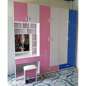 Tủ áo kết hợp bàn trang điểm tiện ích; tiết kiệm không gian Kiểu dáng hiện đại, trang nhã, Tủ có thể làm vách ngăn phòng Làm hoàn toàn bằng nhựa chất lượng cao, độ bền màu trên 20 năm .