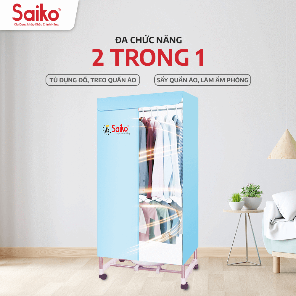 Sấy Khô Nhanh Chóng, Đảm Bảo Quần Áo Luôn Thơm Mát và Khô Rộng Cả Mùa Mưa - Tủ Sấy Quần Áo Đa Năng Saiko CD-1900 Gia đình từ 2-4 người luôn đặt ra câu