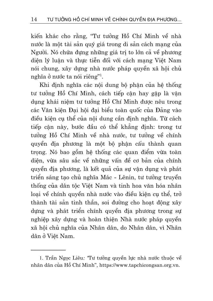 Để vận dụng tốt tư tưởng Hồ Chí Minh về chính quyền địa phương, góp phần hoàn thiện chính quyền địa phương trong giai đoạn mới, Nhà xuất bản Chính trị quốc gia Sự thật xuất bản cuốn sách chuyên khảo Tư tưởng Hồ Chí Minh về chính quyền địa phương và vận dụng xây dựng, hoàn thiện chính quyền địa phương ở Việt Nam hiện nay do PGS.TS. Phạm Minh Tuấn, TS. Trương Cộng Hòa và TS. Quách Thị Minh Phượng cùng tập thể tác giả biên soạn.