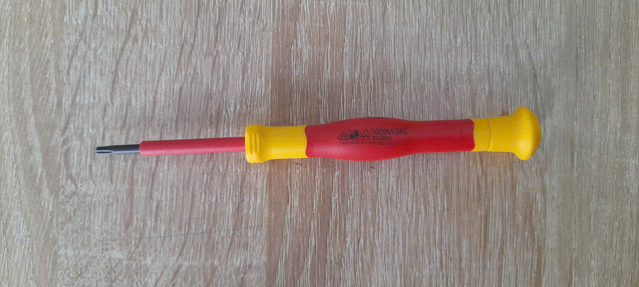 English name:Screwdriver SoftFinish electric Tiêu chuẩnĐược thử nghiệm theo IEC 60900.Ứng dụng Đối với công việc trong khu vực của các bộ phận sống lên đến 1.000 V AC. Size: 2,5 mm Chiều dài: 179