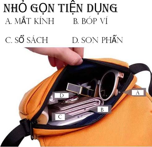 Kích thước đủ để bạn chứa tất cả những vật dụng cần thiết tiện lợi khi đi du lịch, chơi thể thao, đi học, đi làm , IPAD mini , điện thoại… Những ngăn nhỏ giúp bạn thỏa mái để những vật nhỏ như chìa khóa, cart, thẻ ATM…