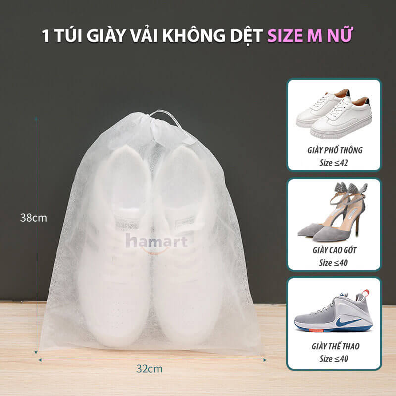 Túi đựng giày dép là giải pháp hoàn hảo giúp bạn có thể sắp xếp gọn gàng và bảo quản tốt cho những đôi giày khi đi xa. Sản phẩm bằng vải không dệt thoáng