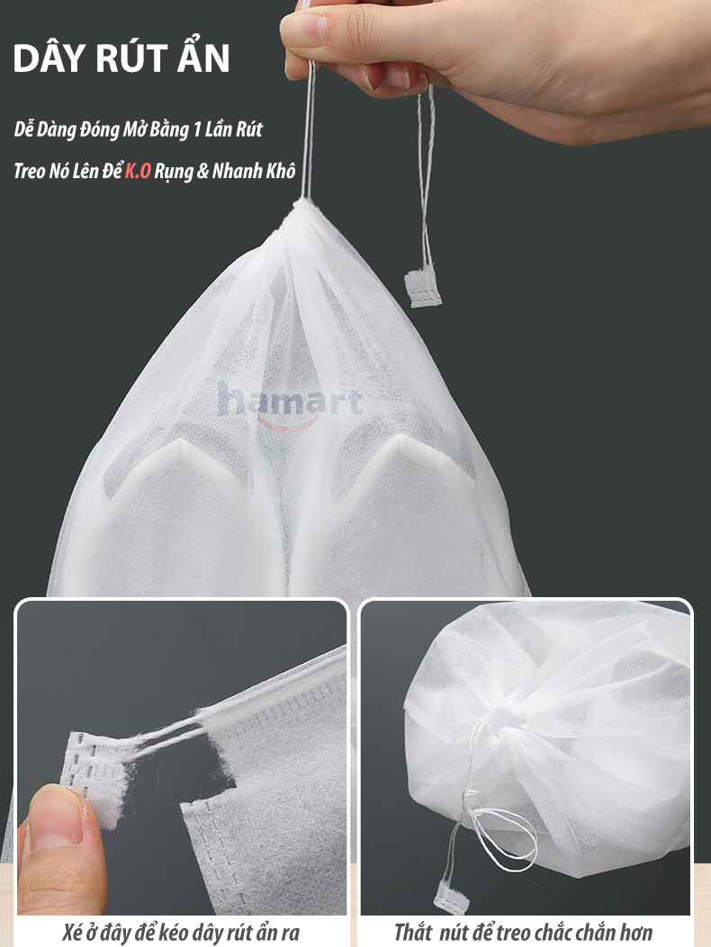 - Dây rút tiện lợi, treo phơi khô, cất giữ & mang theo tiện lợi