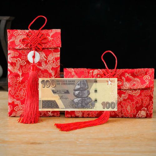 ✨Túi gấm màu vàng loại 100 Zimbabwe mới sưu tầm, làm quà tặng