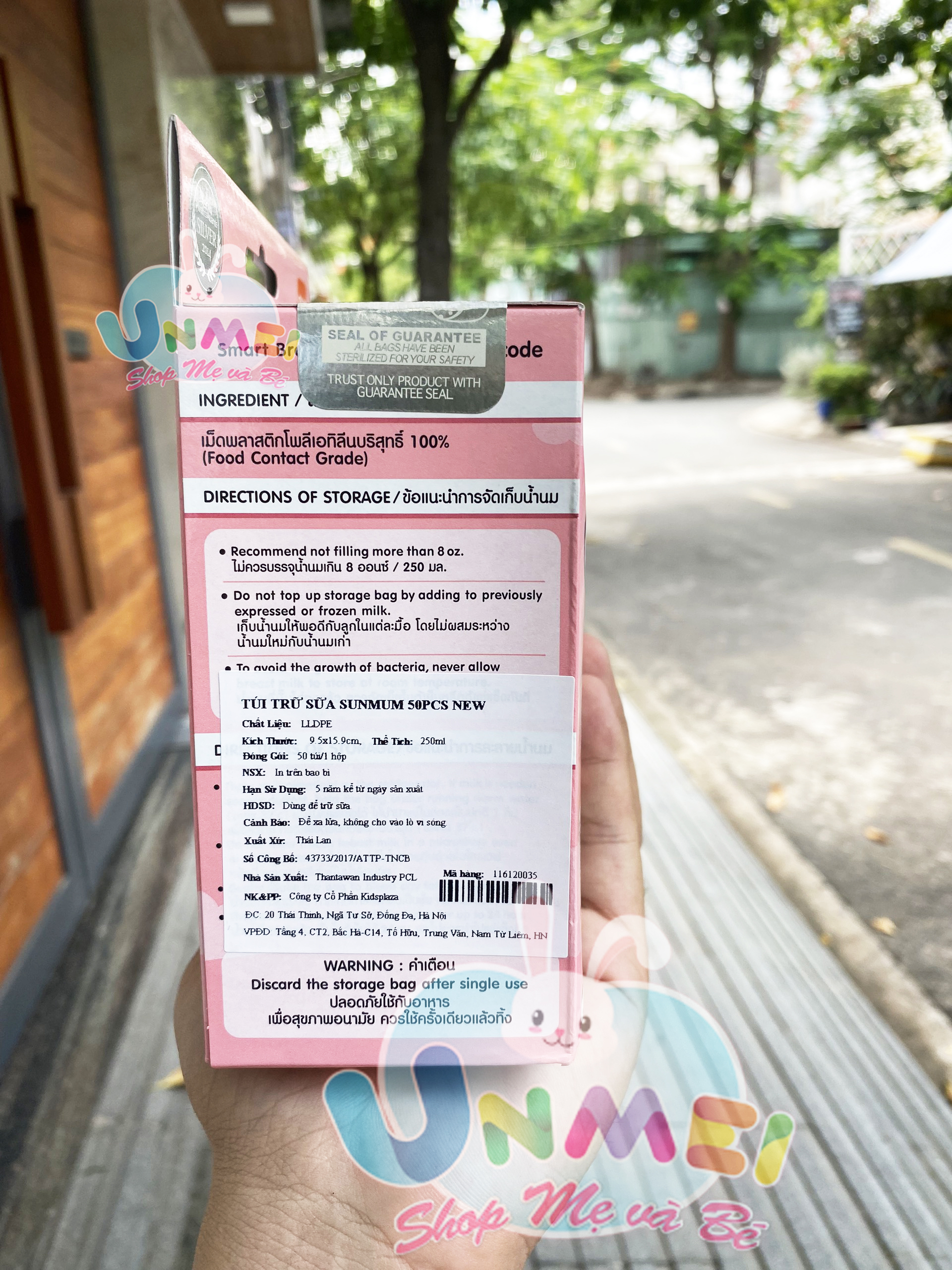 - Thương hiệu túi trữ sữa Sunmum đạt giải thưởng chất lượng ASEAN năm 2014. Hướng dẫn sử dụng: Xé mép để mở miệng túi, cho sữa vào, ép hết không khí và đóng chặt túi. Bảo quản túi sữa trong tủ lạnh hoặc tủ đông trong thời gian quy định. Cho sữa vào bình để sử dụng.