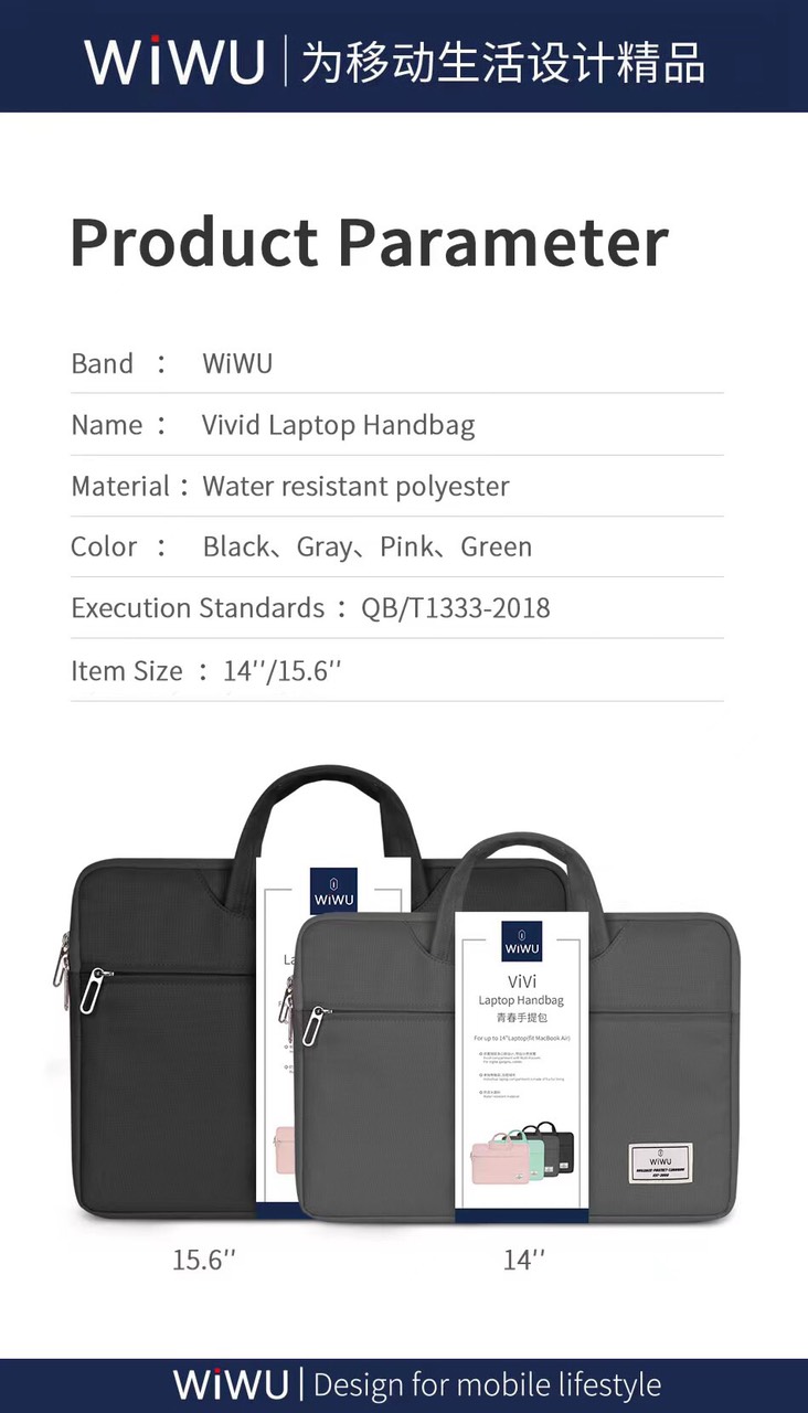 ✨Túi Wiwu Vivi Laptop Handbag Dành Cho Laptop, Macbook Làm Bằng Vải Chống Thấm Nước, Có Ngăn Ngoài Để Phụ Kiện - Hàng chính hãng