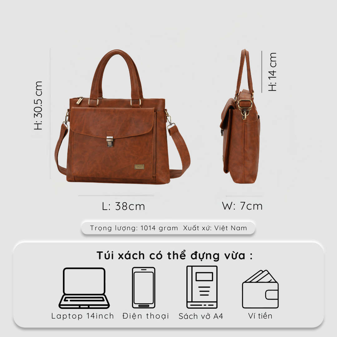 Túi Xách Công Sở Nam Nữ Đựng Laptop 14 inch, Nhiều Ngăn, Đựng Tài Liệu A4 Cao Cấp IDIGO UB2 - 6032