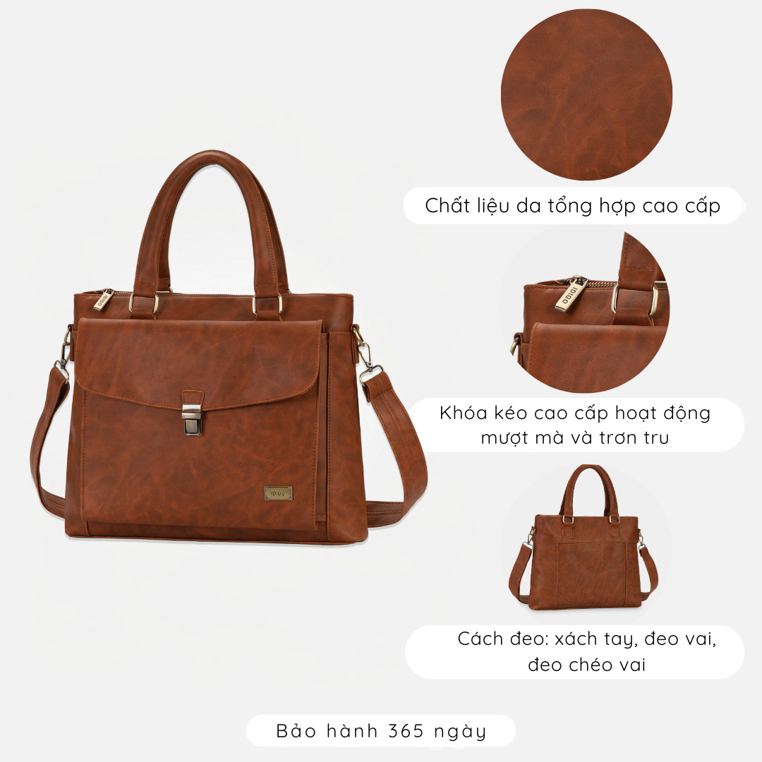 Túi xách công sở nam nữ thanh lịch, túi đựng tài liệu A4 nắp gập IDIGO UB2 - 5067