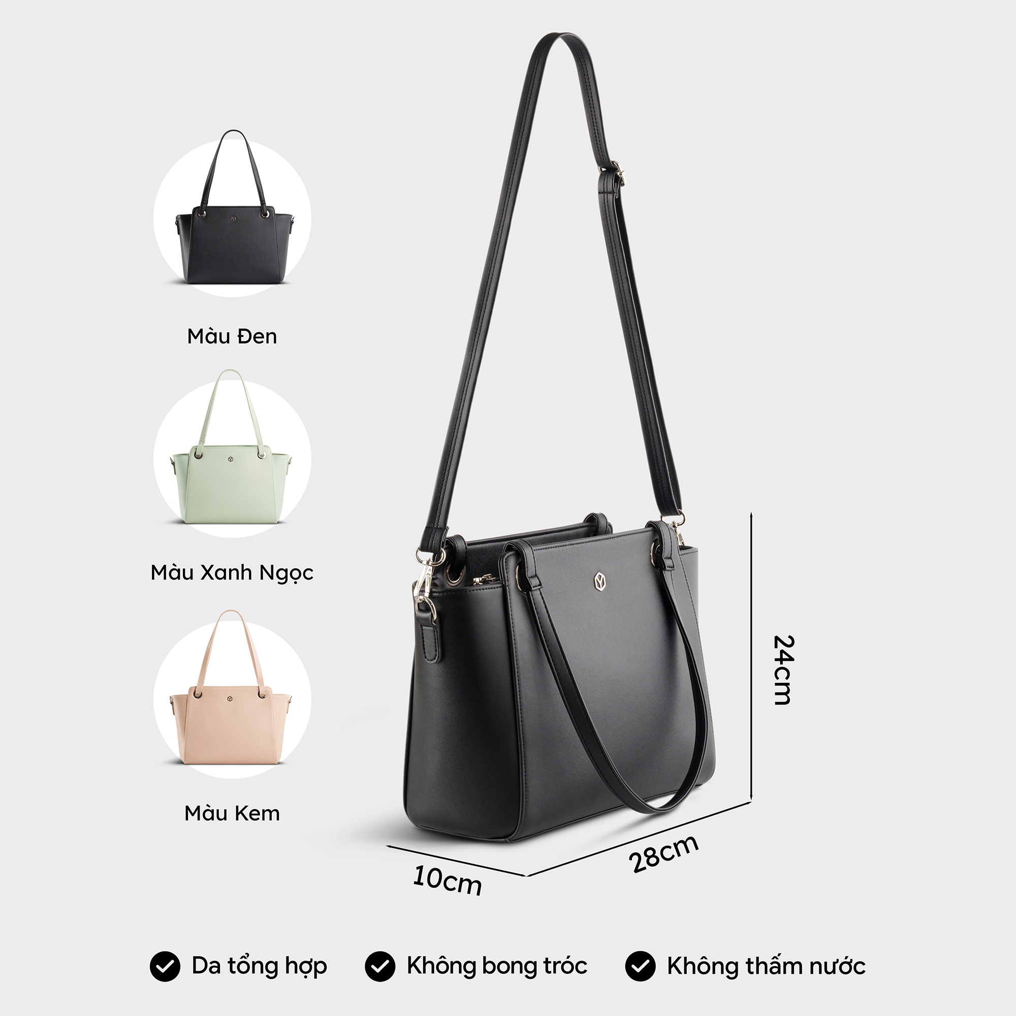 Mua tại TiktokTúi xách da nữ công sở thanh lịch hình chữ nhật Yuumy YTX51 rất phù hợp với chị em nhân viên văn phòng bởi thiết kế bản lớn với khoang túi bên trong rộng rãi, có nhiều ngăn nhỏ giúp việc sắp xếp ngăn nắp, tiện dụng. Sản phẩm được làm từ chất liệu da tổng hợp cao cấp không chỉ bền, đẹp mà còn chống thấm nước, chống xước hiệu quả. Sản phẩm có 3 gam màu hiện đại rất dễ phối đồ, phù hợp mang theo không chỉ lúc đi làm mà những lúc đi chơi, đi du lịch, đi mua sắm, đi cà phê cũng rất đẹp, vừa tôn lên phong cách chỉnh chu, vừa tỏa ra khí chất phóng khoáng của người dùng. THÔNG SỐ KỸ THUẬT: