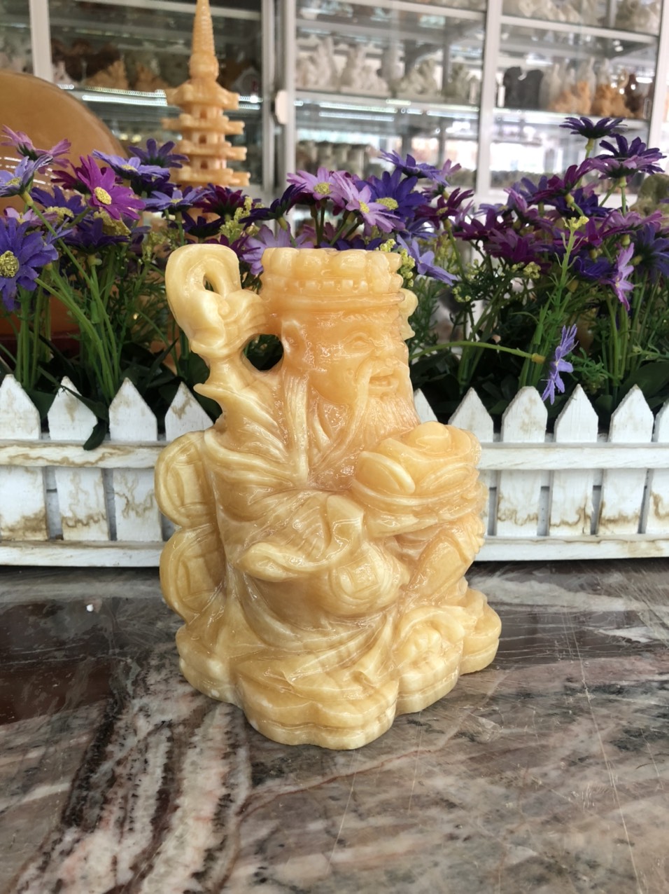 Tượng Phật Bà Quan Âm 2 Mặt đá lưu ly vàng đậm đẹp ĐỂ TRONG XE HƠI hoặc BÀN cao 10cm đk 6cm mệnh KIM mệnh THỔ và THỦY ạ --- Tượng phật bà quan