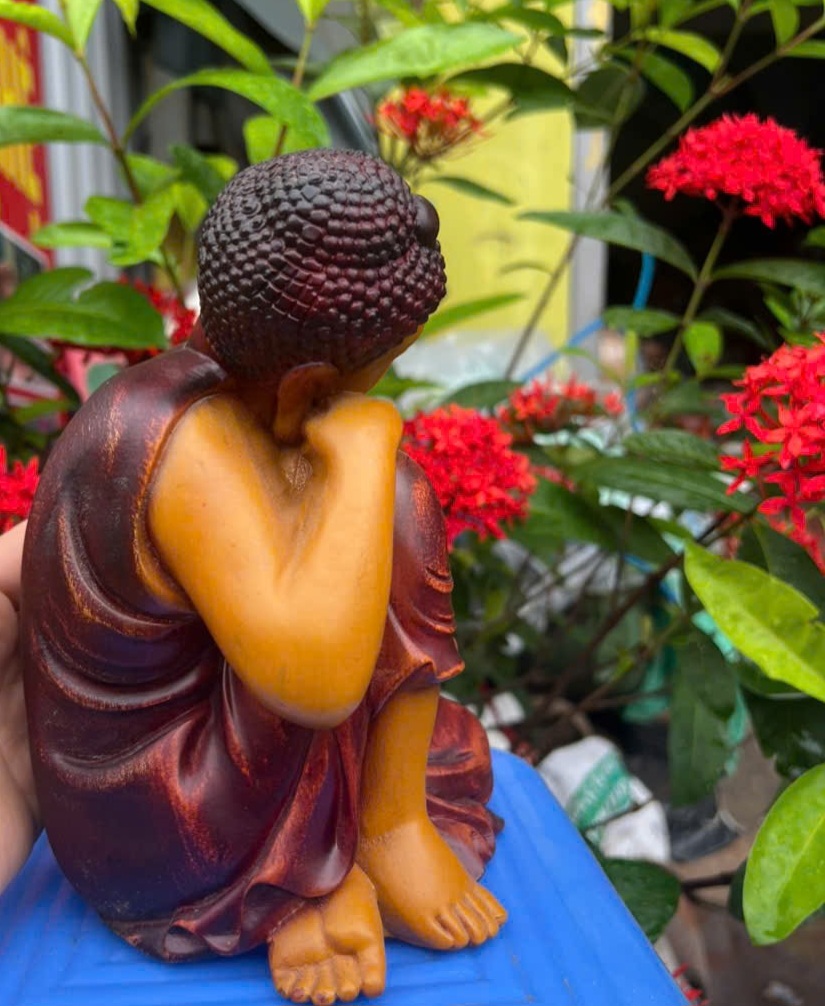 ✨Tượng phật an nhiên bằng gỗ hương đá sơn pu giả cổ cao 20x12cm