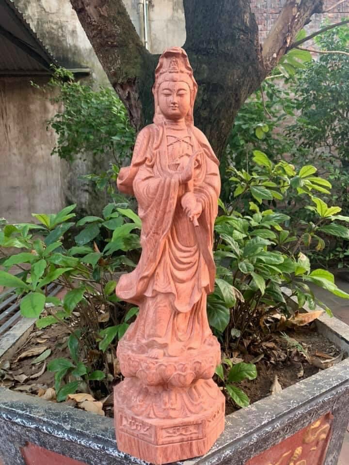 ✨Tượng phật bà quan âm bồ tát bằng gỗ hương đá liền khối kt cao 60×16×16cm