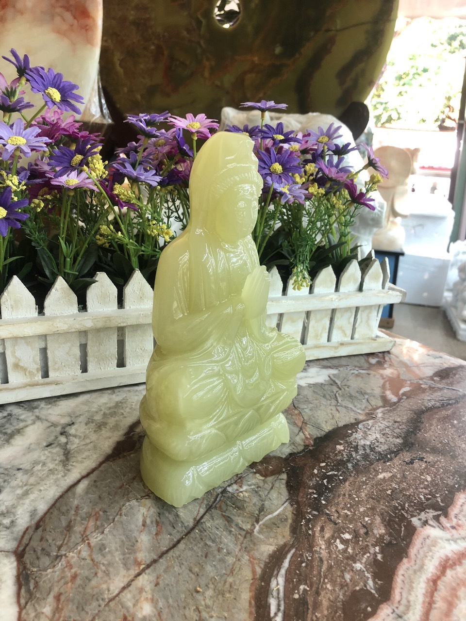 Tượng Phật Bà Quan Âm Mới Đá Lưu Ly Xanh Lá Tươi Đẹp Để Xe Hơi hoặc để bàn cao 12cm đk 7cm đế 5cm Hợp Mệnh Hỏa Mệnh Mộc ạ *** Tượng Phật Bà