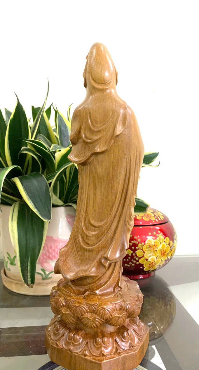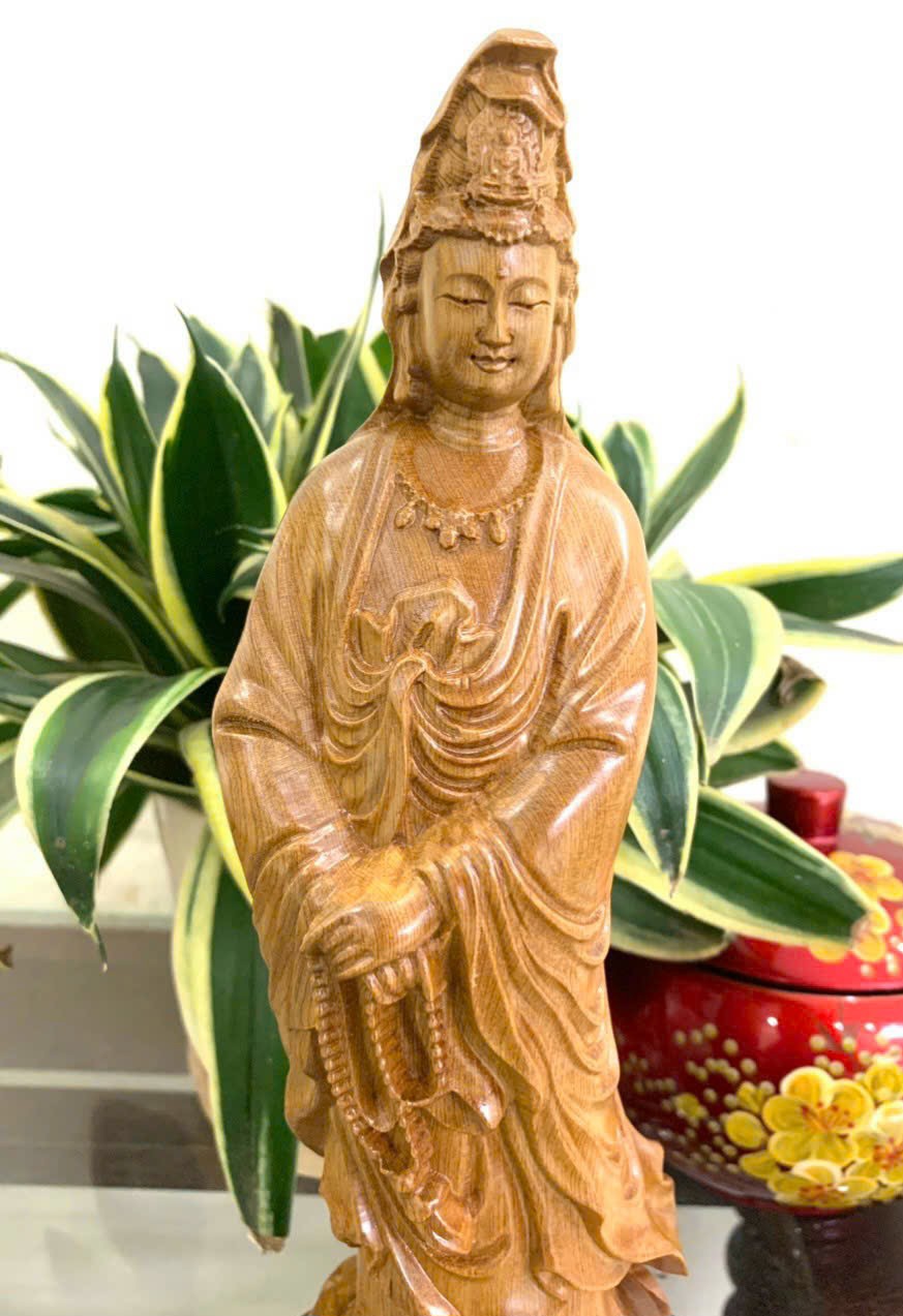 Mua tại Tiktok_ Tượng phật bà quan thế âm bồ tát được làm bằng chất liệu gỗ bách xanh tự nhiên 100%