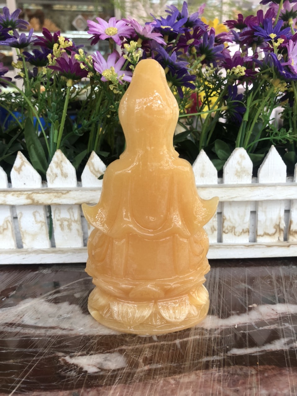Tượng Phật Quan Âm Đá Lưu Ly Vàng Mới để trong xe hơi hoặc để bàn cao 12cm đk 7cm đế 5cm Mệnh Kim mệnh Thổ mệnh Thủy ạ *** Tượng Phật Quan Âm Đá