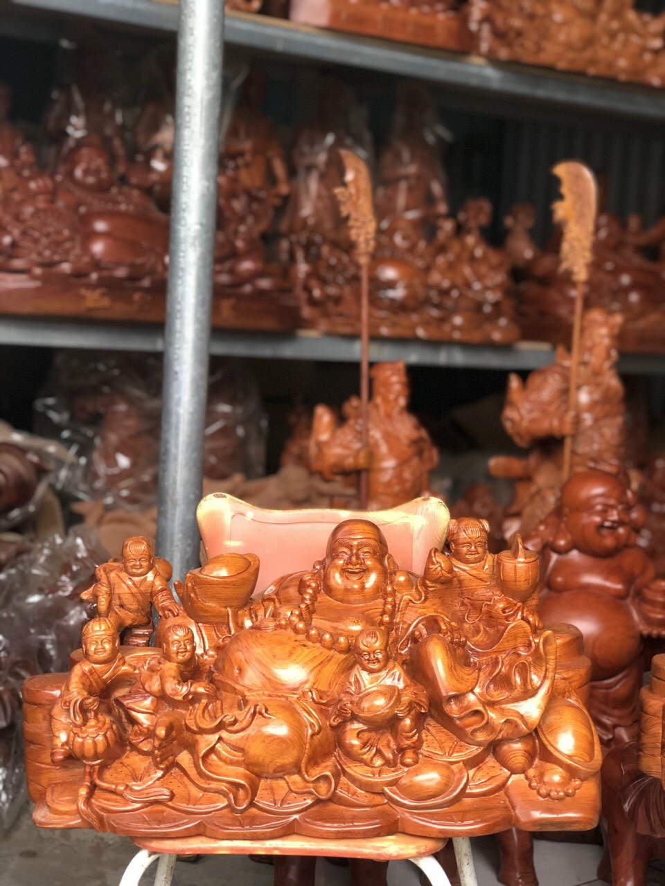 Tượng Phật Di Lặc ngũ phúc ngồi tùng đồ gỗ Nguyễn Hồng 0987336318