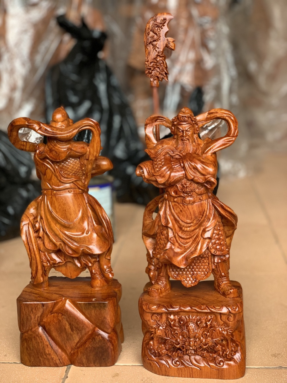 Mua tại TiktokTượng quan công cầm đao đứng trên đầu hổ phù được làm bằng chất liệu gỗ hương đá tự nhiên 100% Kích thước cao 40×16×11cm _ Tượng quan công khoanh tay cầm đao đứng trên đầu hổ phù được trạm khắc tỉ mỉ tinh sảo kỳ công .Từ những người thợ dầy rặn kinh nghiệm ,Cũng như tay nghề cao trong làng nghề truyền thống .Chính vì thế tượng quan công khoanh tay đã đáp ứng đầy đủ những tiêu trí ( Đẹp bền rẻ ) Thẩm mỹ nghệ thuật với chất lượng tuyệt vời