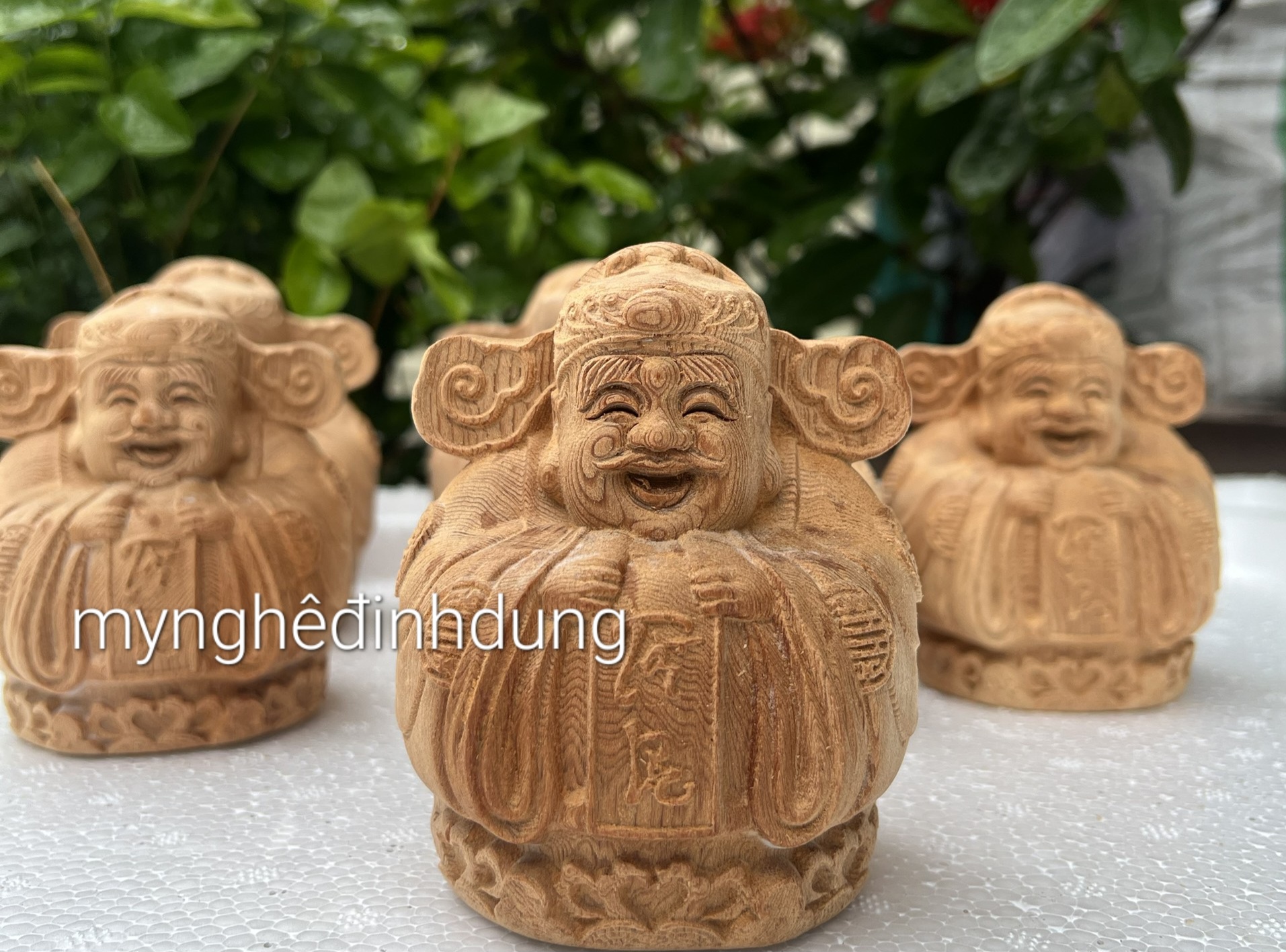 Mua tại TiktokTượng ông thần tài được làm bằng chất liệu gỗ ngọc am liền khối tự nhiên 100% Kt cao 13×10×10cm _ Tượng được chạm khắc gọt tỉa vô cùng tỉ mỉ tinh xảo kỳ công. Đi hầu hết tất mọi chi tiết góc ngách nội dung hoa văn của tượng đều được gọt tỉa chỉnh sửa sắc nét hoàn toàn bằng tay thủ cô