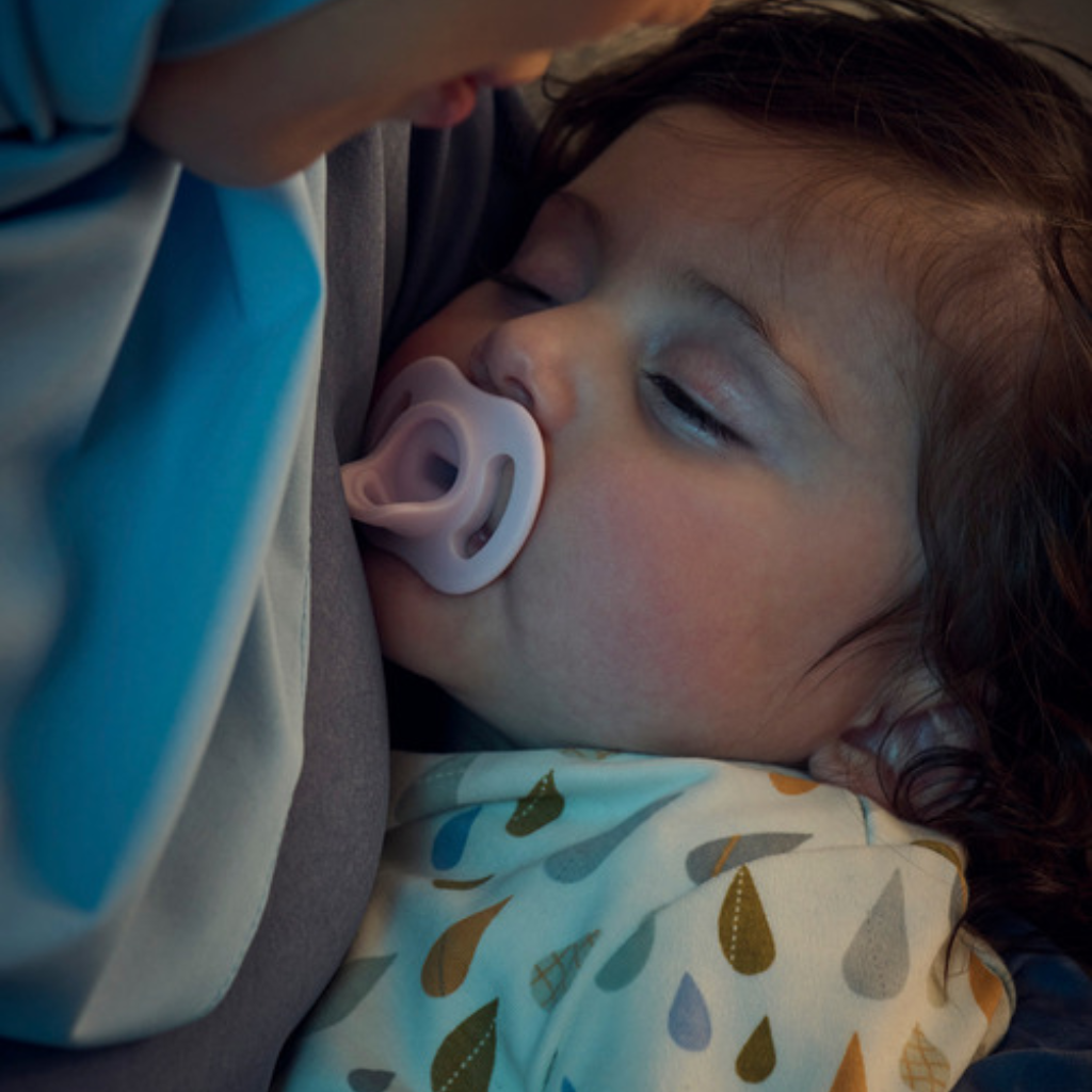 Ty ngậm thông khí Ultra Air ban đêm SCF376/21: Nhẹ, dễ dàng tìm thấy trong bóng tối Giới thiệu Ty ngậm ultra air Philips Avent có các lỗ thoát khí lớn hơn để giúp làn