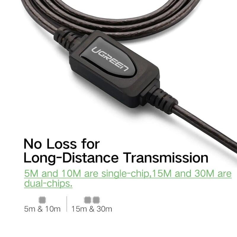 Mua tại TiktokUgreen 10326 30m usb 2.0 active extension cable with chipset đen us121