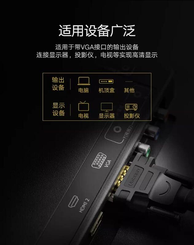 Cáp VGA Ugreen chính hãng chuẩn 3C+6 3C+9 đầu mạ vàng dài 1.5M 3M 5M 8M 10M 12M 15M 20M 30M