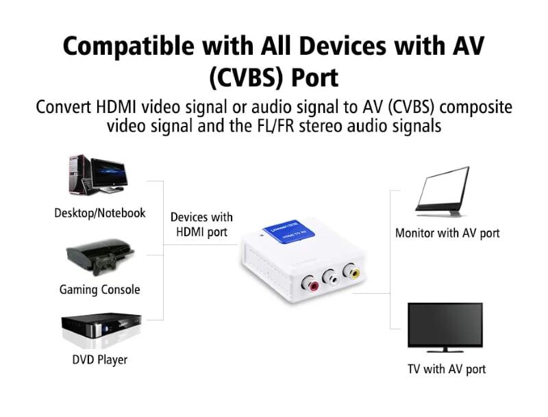 - Features: Convert HDMI to AV signal.