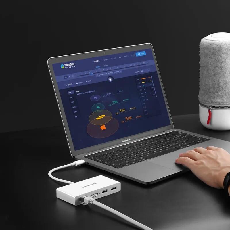 Cáp chuyển đổi USB Type-C sang HUB 3.0 & VGA Ugreen 40375 chính hãng