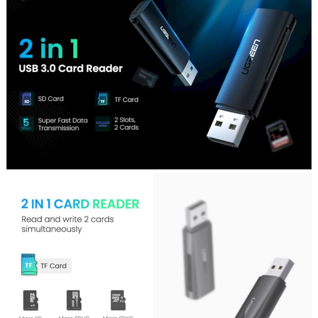 ✨Ugreen UG60722CM264TK SD/TF USB 3.0 Màu Đen Đầu đọc thẻ SD/TF chuẩn USB 3.0 - HÀNG CHÍNH HÃNG