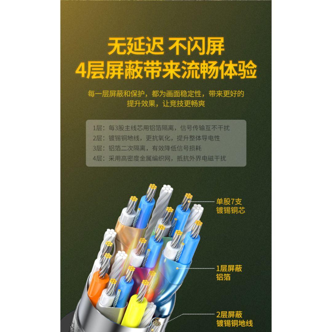 1. 1-2M: 30AWG;3M: 28AWG 2. Wire Core: tin-plated oxygen-free copper 3. Support 3D/HDR/HDCP 4. Resolution: 1080P@240Hz/2K@165Hz/4K-144Hz/8K@60Hz 5. Multiple internal shielding 6. Support mirror mode and extend mode 7. Support ATI eyefinity multi split-screen mode 8.