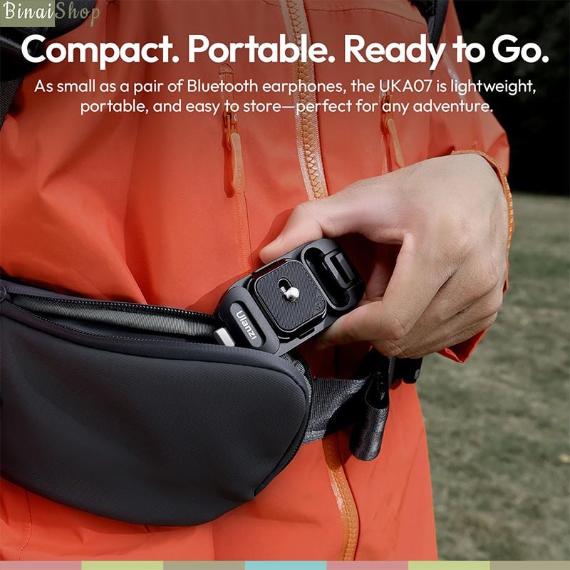 Mua tại Tiktok- Ulanzi UKA07 thiết kế nhỏ gọn, bền từ hợp kim nhôm CNC, nặng 94g, chịu tải 10kg, kẹp và tháo lắp nhanh balo/thắt lưng, khóa kẹp 3 mức ôm chắc dây 10mm×70mm với lót silicone chống trượt tương thích với tấm thao tác nhanh Uka & F38 giữ thiết bị cố định, an toàn cho mọi hành trình.