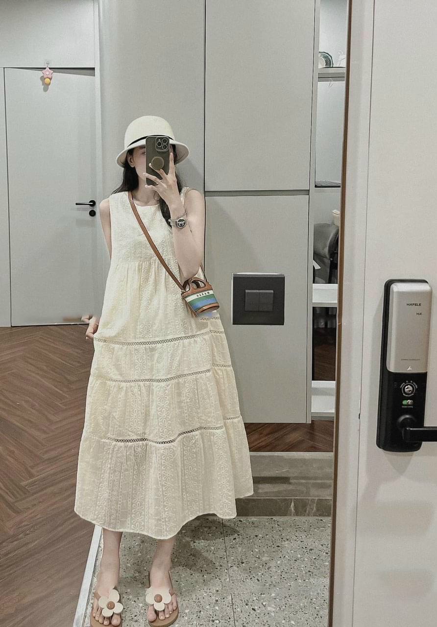 ✨Váy Bầu Sát Nách Mùa Hè Azuno V84 Chất Liệu Cotton Ren May 2 Lớp Cao Cấp
