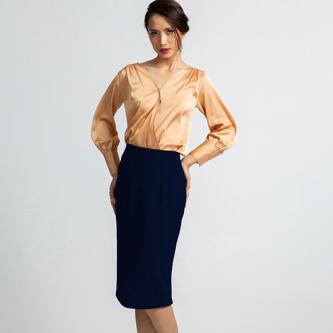 - dáng váy bút chì dài vừa qua gối