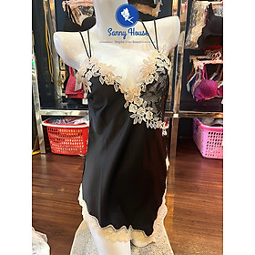 Đầm ngủ, Váy ngủ lụa Pháp (Lụa Latin) thiết kế 2 dây chéo lưng phối ren cao cấp