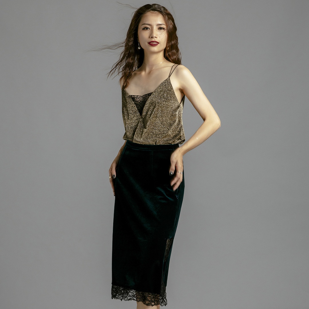 Xanh Hunter – tone màu hoàng tộc mang vẻ sang trọng đẳng cấp. Xanh Hunter gợi mở hình ảnh liên tưởng đến những đồng cỏ mênh mang, những cánh rừng sâu thẳm, những không gian mở ra lối đi đầy tò mò. Xanh Hunter cũng chính là tone màu ấm áp và đẳng cấp nhất cho những bộ trang phục mùa lễ hội cuối năm.                         Là phụ nữ, dù thoải mái đến mấy thì cũng có những dịp mà bạn cần phải ăn mặc thật ấn tượng, thật kiêu sa. Với nhiều chị em, chọn đồ sao cho hợp dịp hợp thời điểm chẳng phải là bài toán dễ dàng. Có người sẽ mặc hoài màu đen hoặc trắng, có người thì thích “đóng khung” mình trong những bộ outfit cố định và có phần nhàm chán. Lúc này, sao bạn không thử Chân Váy Nhung - một thiết kế mới Hity vừa cho ra mắt, đơn giản, dễ mặc mà còn toát lên vẻ tinh tế và đẳng cấp. Nhiều chị em dễ lầm tưởng váy nhung là dành cho phụ nữ lớn tuổi nhưng sự thật, đây là loại váy sang trọng - item thời trang cổ điển và không lỗi mốt bao giờ! Chân Váy Nhung Phối Ren được Hity phối hợp giữa chất liệu nhung ép phối sợi kim tuyến pha giữa polyester, spandex tạo nên sợi vải mềm mại, mặt trong mềm mát, mặt ngoài mịn màng, có độ co giãn và bóng nhẹ sờ vào rất mát tay. Độ co giãn của chân váy chính là điểm mạnh mang lại sự thoải mái tối đa cho người mặc. Sở hữu kiểu dáng thanh lịch, form ôm, xẻ tà phối ren, Chân Váy Nhung Phối Ren giúp phái đẹp tự tin thể hiện gu thẩm mỹ cá nhân khi phối với phụ kiện khác nhau mà vẫn tôn lên vẻ quyến rũ và sang trọng. Chân Váy Nhung Phối Ren Hity trông khá cổ điển, thanh lịch nhưng không kém phần hiện đại. Nàng dễ dàng phối chân váy kèm chiếc áo hai dây pha kim tuyến hay chiếc áo đen cùng với một vài phụ kiện tô điểm là đã trở nên thật nổi bật và ấn tượng trong mùa lễ hội này rồi!
