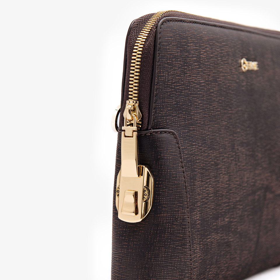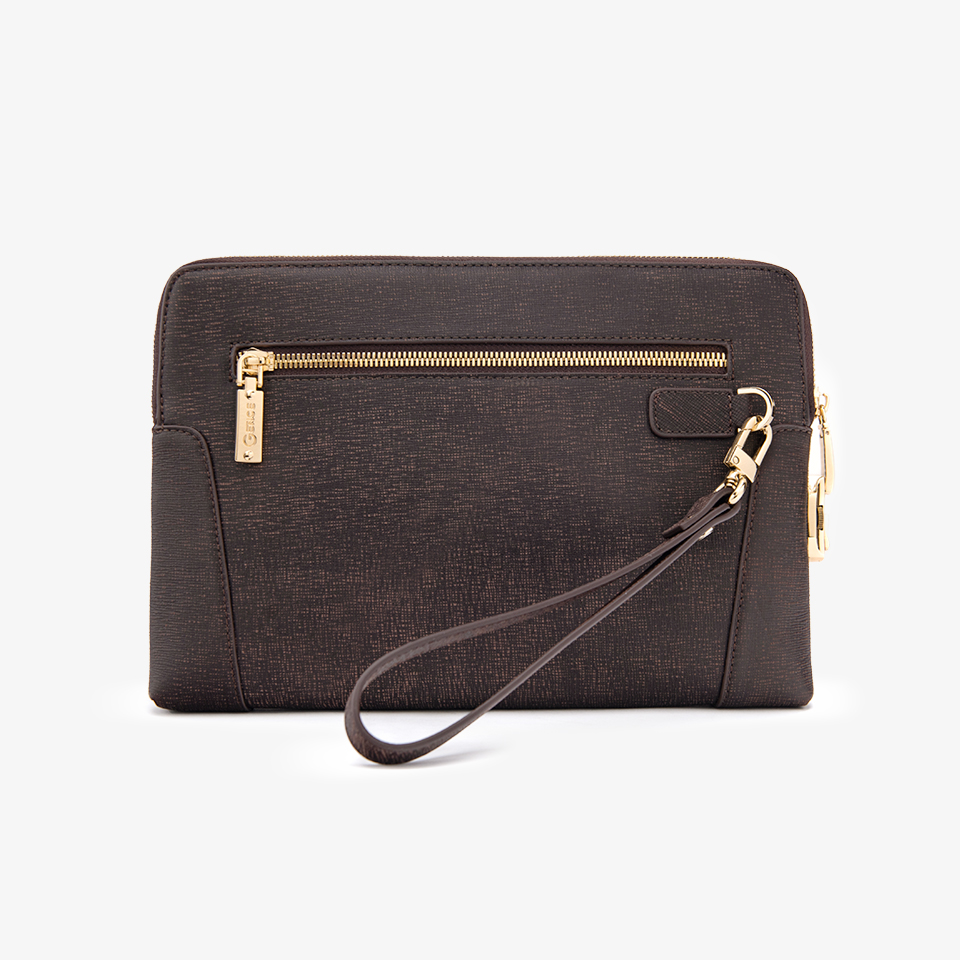 Clutch Cầm Tay Da Bò Saffiano Chà Nâu CK11 | GENCE Sài Gòn