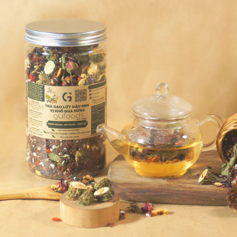 GIỚI THIỆU Khám phá sự kết hợp mới lạ trong mỗi ngụm Trà gạo lứt đậu đen vị Khổ qua rừng cùng nhà GUfoods! Với sự thơm ngon và những lợi ích tốt lành từ