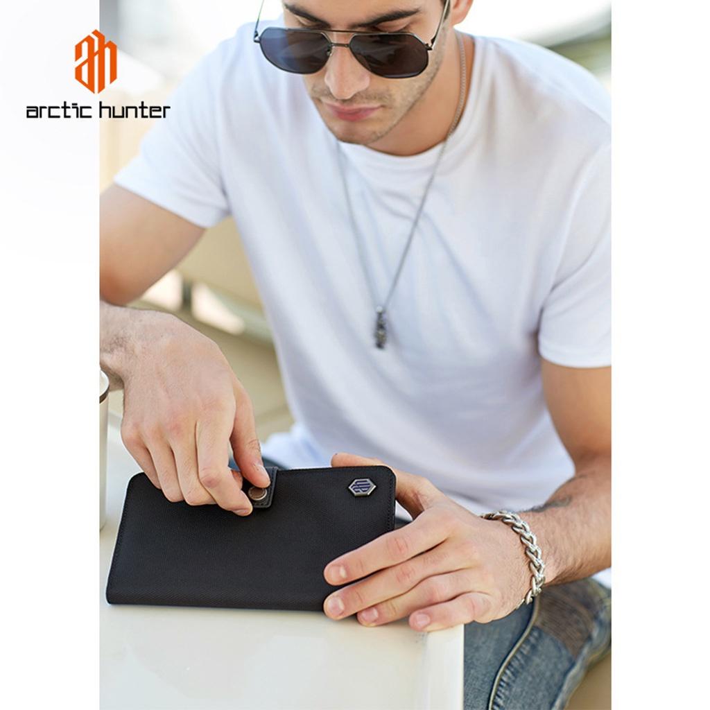 ✨Ví nam cầm tay Arctic Hunter Q00010 dáng dài dập vân có nút bấm