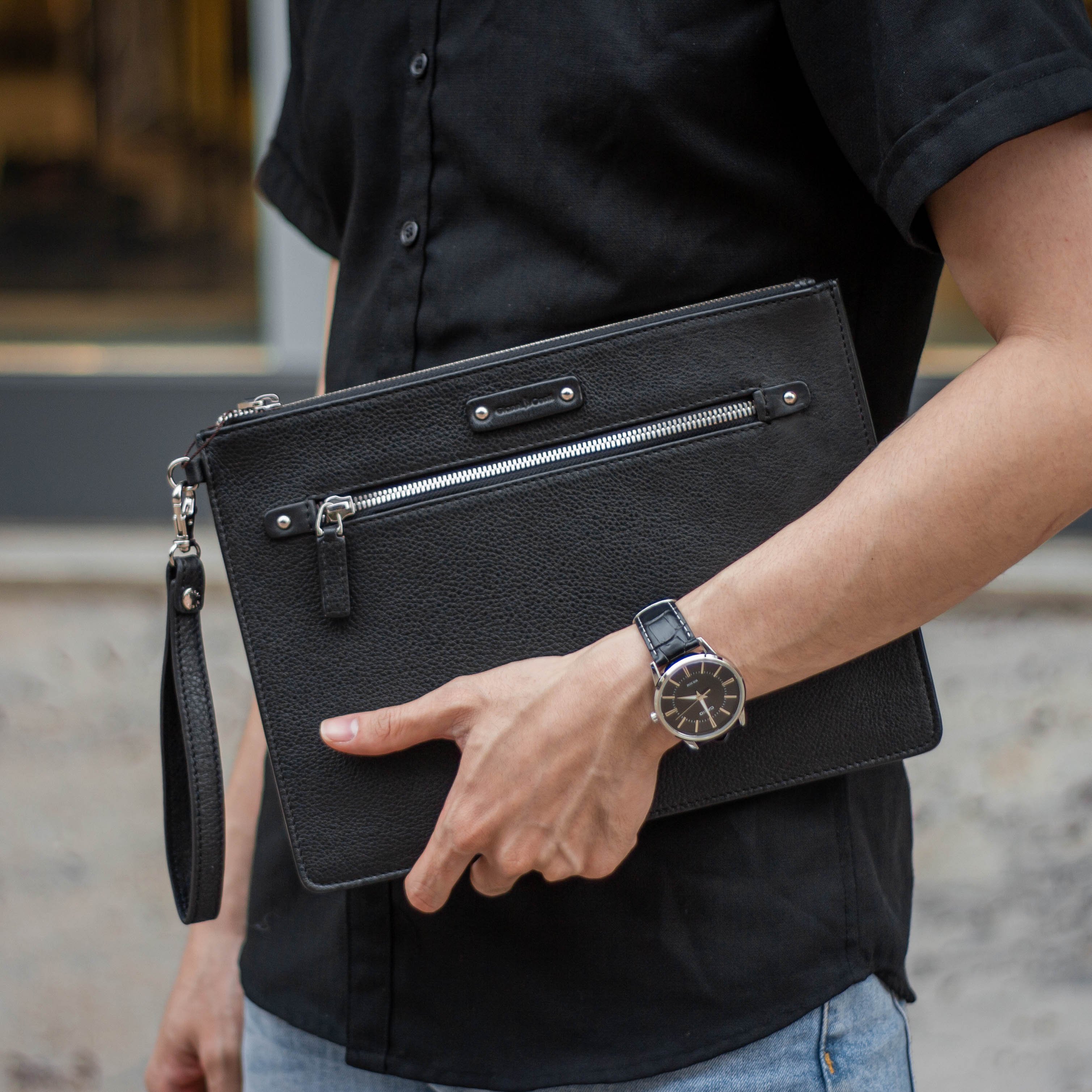 - Xuất sứ: GENCE Việt Nam - Mã SP: RB03 - Sử dụng: Clutch cầm tay, đeo tay cho nam - Kích thước: 21cm (Dài) x 13cm (Cao) x 5cm(rộng) Thiết kế với form dáng cầm tay có khóa