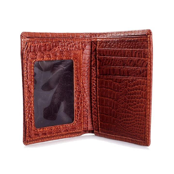 Ví/Bóp nam Huy Hoàng da bò vân cá sấu kiểu đứng màu nâu 2121