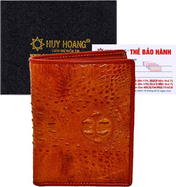 Ví/Bóp nam Huy Hoàng da bò vân cá sấu kiểu đứng màu nâu 2121