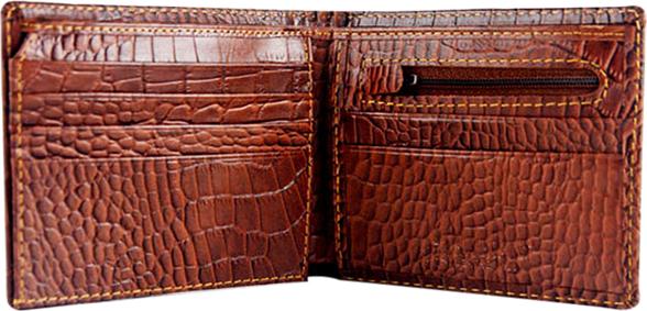 Ví/Bóp nam Huy Hoàng da bò vân cá sấu màu nâu 2112