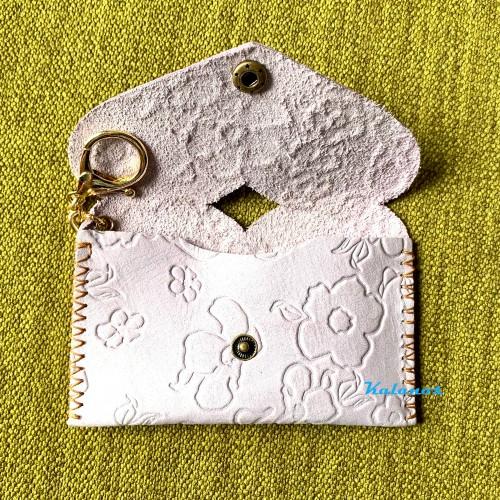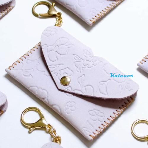 Kalanos - KMKN40-Hong– ví nữ mini móc khóa nhỏ gọn da bò handmade may tay cao cấp & độc đáo, nút bấm loại tốt độc đáo, nắp gập cách điệu hình trái tim, màu hồng tím nhạt, hàng đẹp