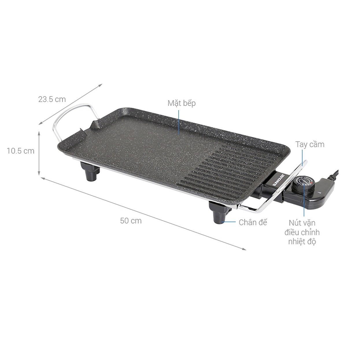BẾP NƯỚNG ĐIỆN SUNHOUSE SHD4600 Bề mặt phủ chống dính đá hoa cương Whitford (USA) siêu bền kháng khuẩn Tay cầm cách nhiệt Bộ điều chỉnh nhiệt độ linh hoạt, nhiều chế độ Thông số
