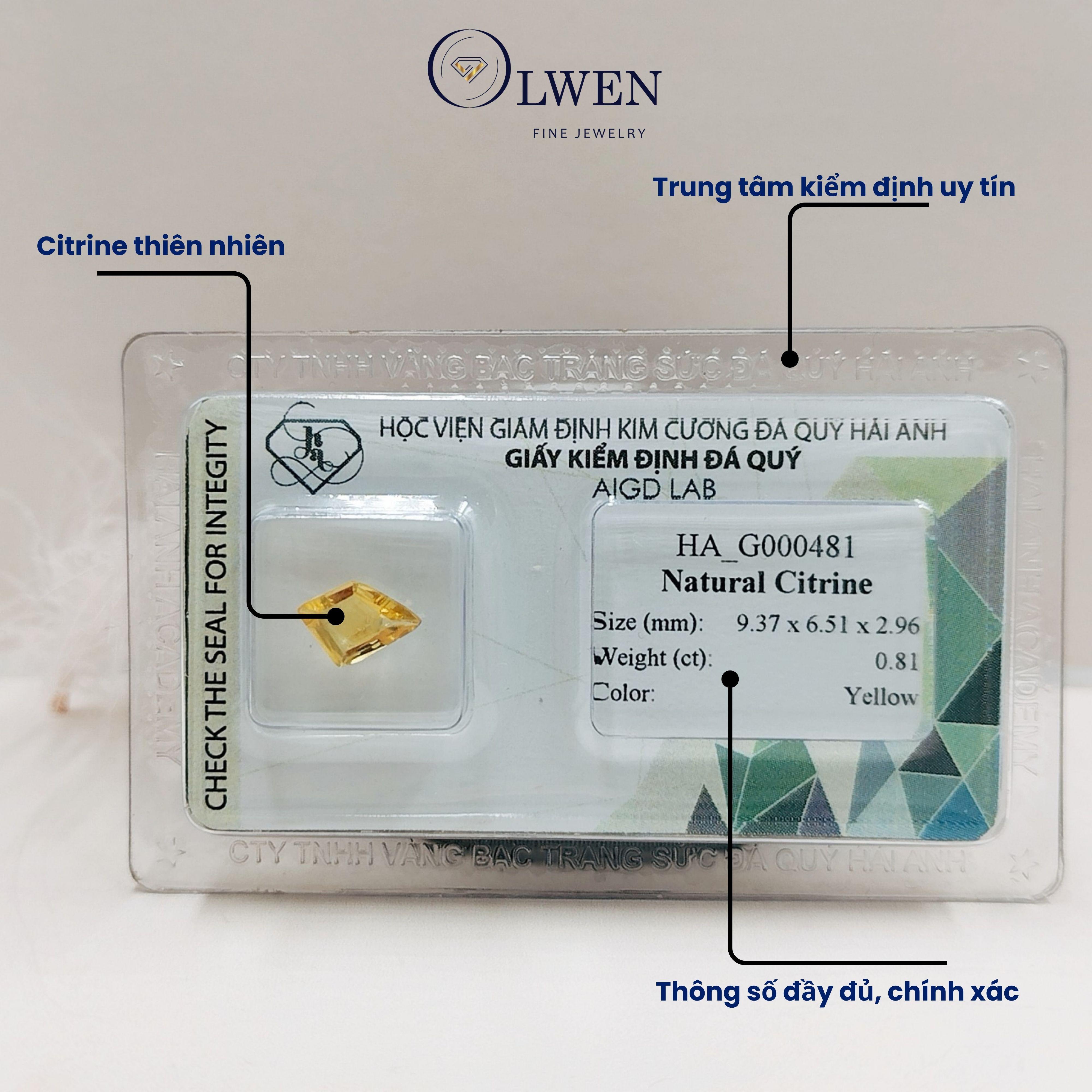 VIÊN ĐÁ THẠCH ANH VÀNG (CITRINE) THIÊN NHIÊN_HA-G000319 Tên sản phẩm: Viên đá thạch anh vàng thiên nhiên_HA-G000319, đá phong thủy. Kích thước: 7.42 x 9.39 x 5.30 mm Trọng lượng: 1.96cts Màu sắc: vàng