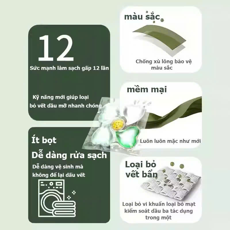 ƯU ĐIỂM NỔI BẬT Chỉ cần thả 1 viên vào lồng giặt, bạn sẽ trải nghiệm 4 lợi ích giặt giũ mà không cần xách nặng hay đo đạc: • Tiện Lợi Tối Đa: Thao