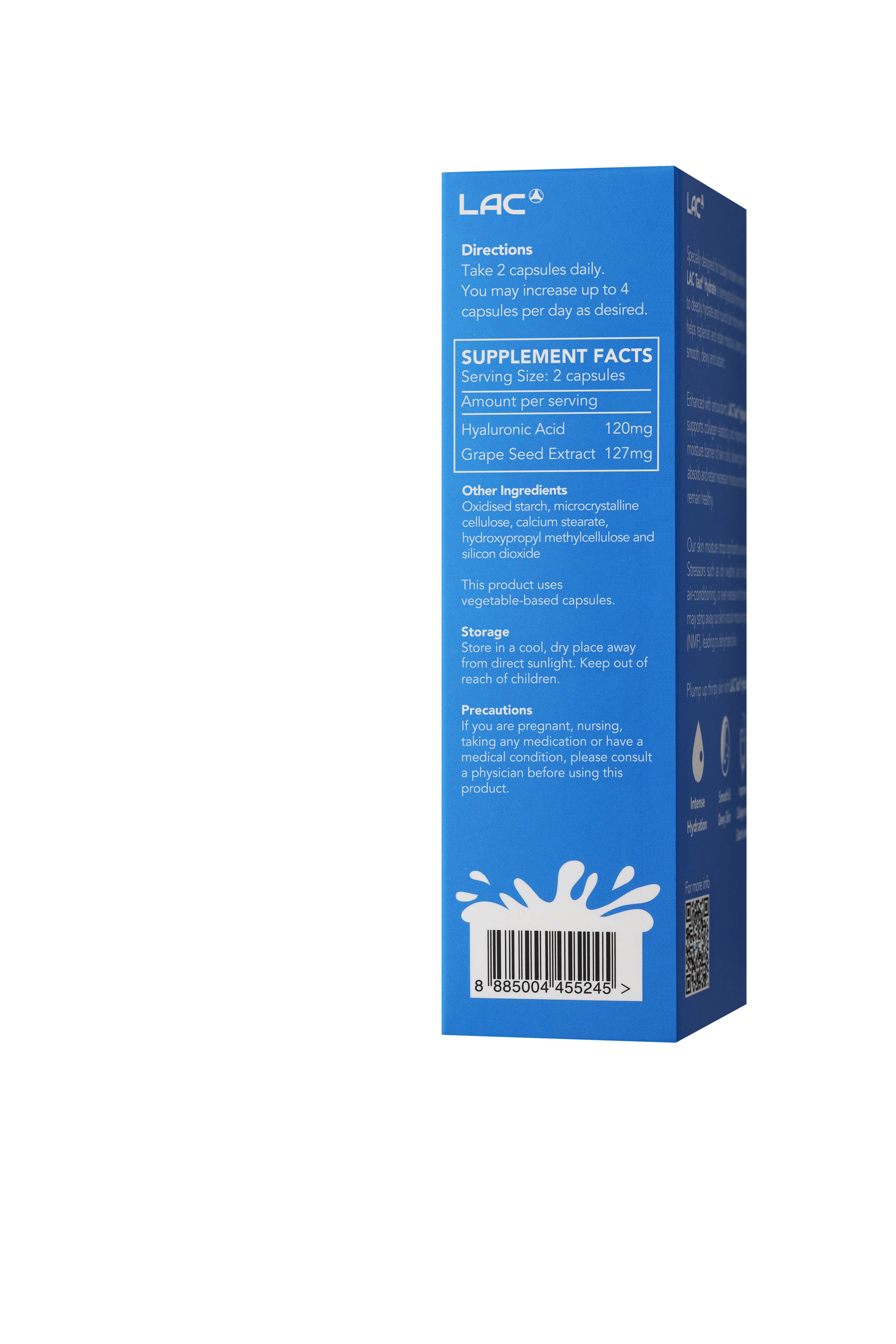VIÊN UỐNG BỔ SUNG CHẤT DƯỠNG ẨM LAC TAUT HYDRATE (60 VIÊN) chứa dưỡng chất dưỡng ẩm cho da - Hyaluronic Acid (chất giữ ẩm) và chiết xuất hạt nho (chất chống oxy hóa) cung